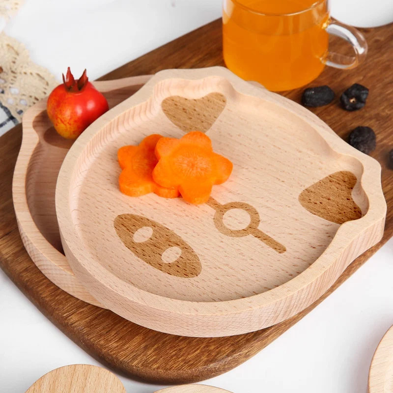 Cartoon Wooden Dinner Plate Kids Lightweight Cartoon Breakfast Snack Dish Food Fruit Tray Specialty