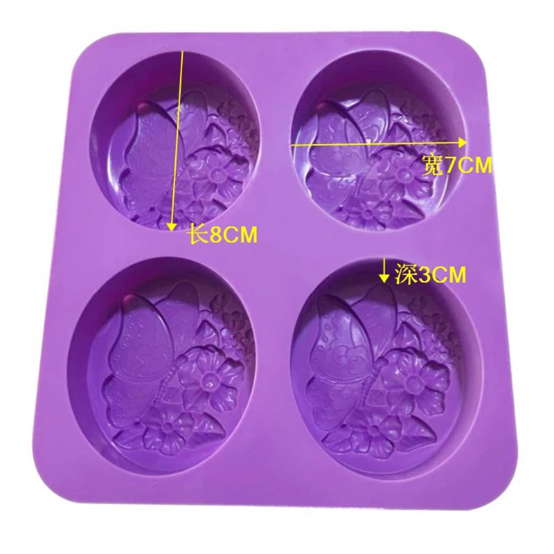 New Flower Silicone Soap Mould 4 holes butterfly fondant soap jelly pudding cake decorating tools b