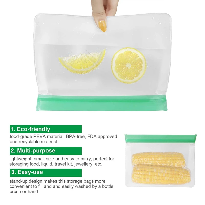 HIGH QUALITY Big deal Stand Up Reusable Food Storage BagsLeakproof Freezer Bags for Kids 4 Reusable Sandwich Bag