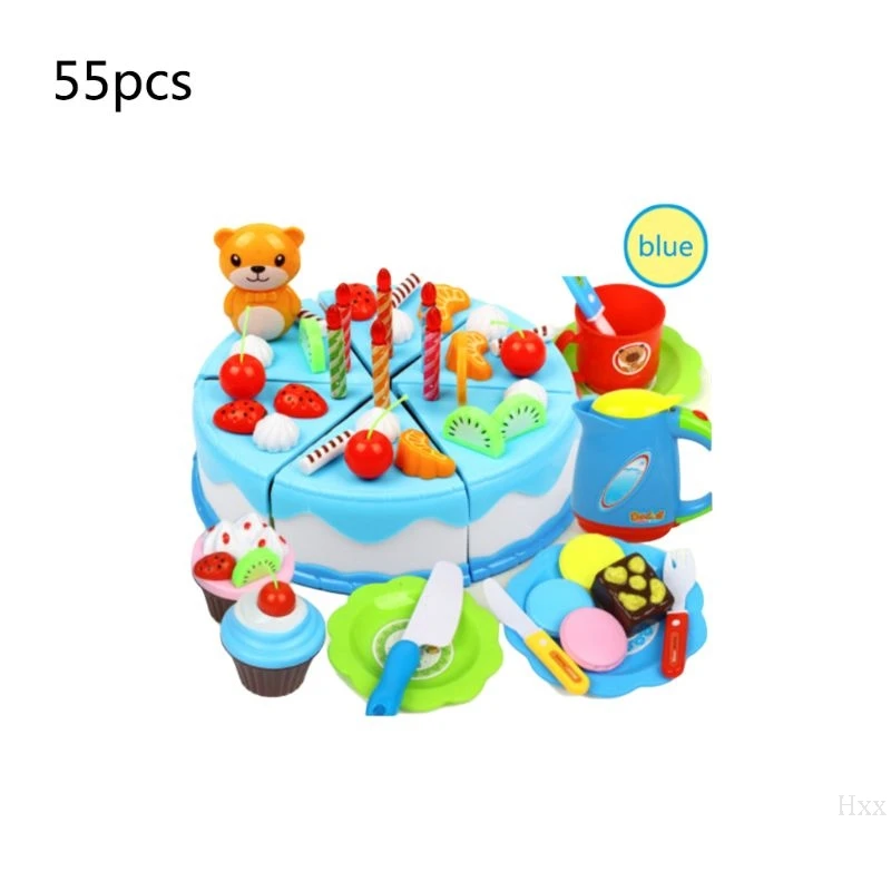 55pcs/set Happy Birthday Cake Toy Fruit Food Cutting Kitchen Food Pretend Role Play Kids Educationa