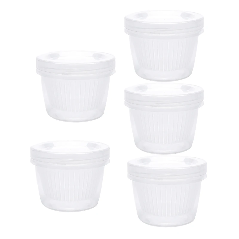 5Pcs Plastic Round Drain Sealed Box Storage Containers Double Drain with Cover Food Kitchen Accesso