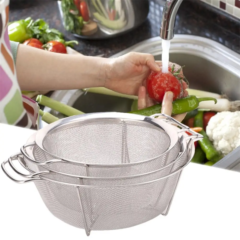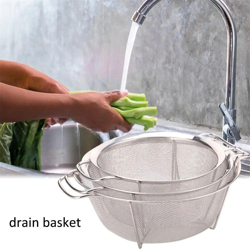 Kitchen Stainless Steel Colander Sieve Rice Washing Bowl Food Cleaning Strainer For Fry Rice Vegeta
